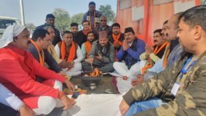 रूद्रपुर – प्रधानमंत्री नरेंद्र मोदी की कल होने जा रही महारैली को निविघ्न संपन्न करने और रैली की सफलता के लिए मोदी ग्राउण्ड में भूमि पूजन और हवन यज्ञ किया गया। साथ बूथ स्तर पर भी कार्यकर्ताओं ने हवन यज्ञ किये। मोदी ग्राउण्ड में हवन यज्ञ का आयोजन केंद्रीय रक्षा राज्य मंत्री अजय भट्ट की मौजूदगी में किया गया। आर्य समाज के पुरोहित प्रभात कुमार आर्य ने वैदिक मंत्रों के साथ हवन यज्ञ संपन्न कराया।