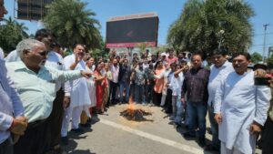 पुतला फूंकने वालों में कांग्रेस नेता हरीश पनेरू,पार्षद मोहन खेड़ा, दिलीप अधिकारी, ममता रानी, अबरार अहमद,सौरभ चिलाना सहित दर्जनों कांग्रेसी शामिल थे।