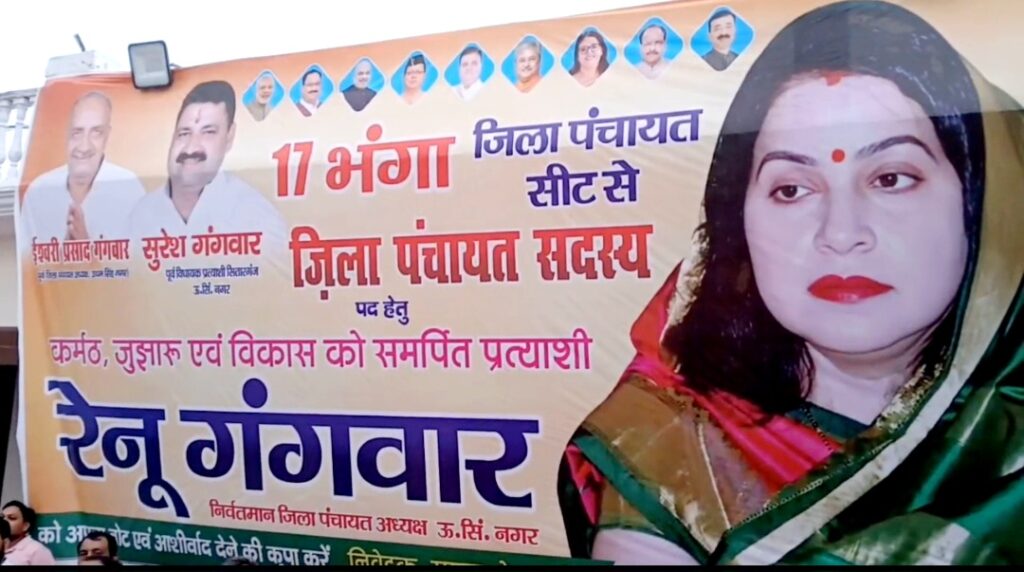 – इंडिया नज़र ब्यूरोकिच्छा – उत्तराखंड के ऊधम सिंह नगर जिले की जिला पंचायत सदस्य की 17 भंगा सीट सबसे हॉट सीट बन गई है। इस सीट से दिग्गज राजनीतिक घराने की बहु और निवर्तमान जिला पंचायत अध्यक्ष रेनू गंगवार चुनाव मैदान में है। हालांकि दो अन्य प्रत्याशी बुशरा मलिक और शिवांगी गंगवार भी चुनाव मैदान में है।